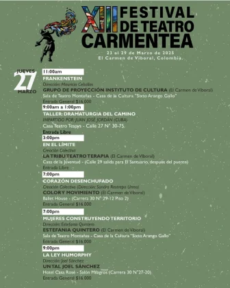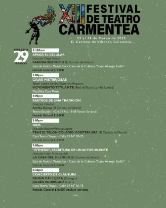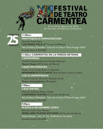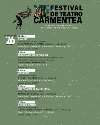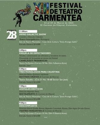 23MAR(MAR 23)09:0029(MAR 29)19:30XIII Festival de Teatro CarmenteaEl Carmen de Viboral